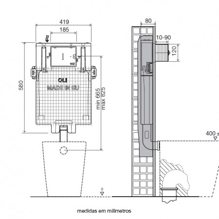 双冲隐蔽式水箱,适用于双冲或单冲执行器,6/3升(可调至7/3)